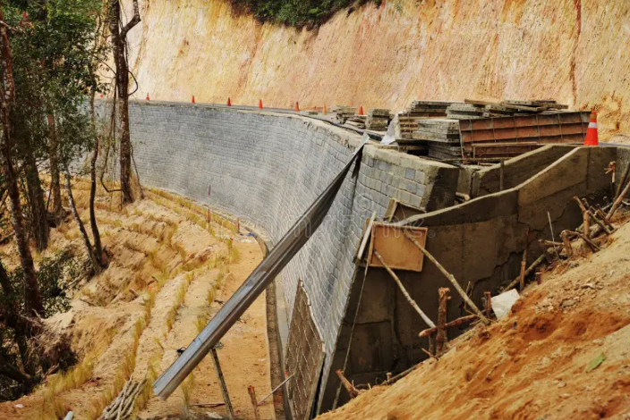 - Retaining Walls: These structures are designed to hold back soil and prevent it from sliding down the slope. They can be constructed from concrete, stone, or geosynthetic materials and are often used in combination with other methods.